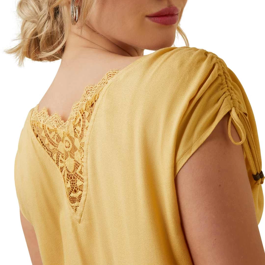 Say hello to summer’s favourite crop top. Lightweight and slightly fitted, it has flirty lace trim in the back and self-tie closures at the sleeves that we love to pair with high-rise denim and our flowiest skirt.