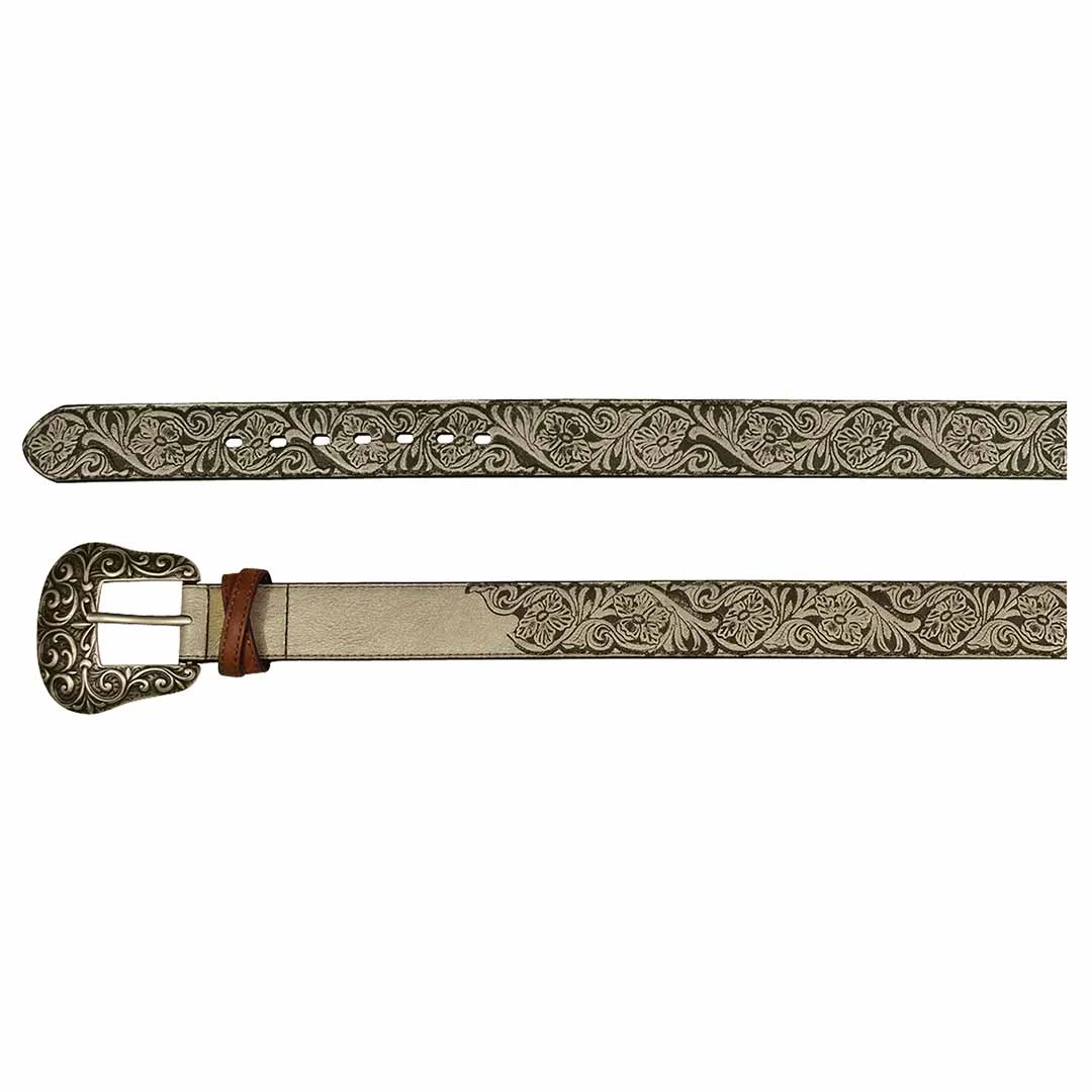 Take your fashion up a notch with this Catchfly belt. Featuring a warm metallic finish with an embossed floral tooling pattern and an antique brass buckle you will stand out from the crowd.