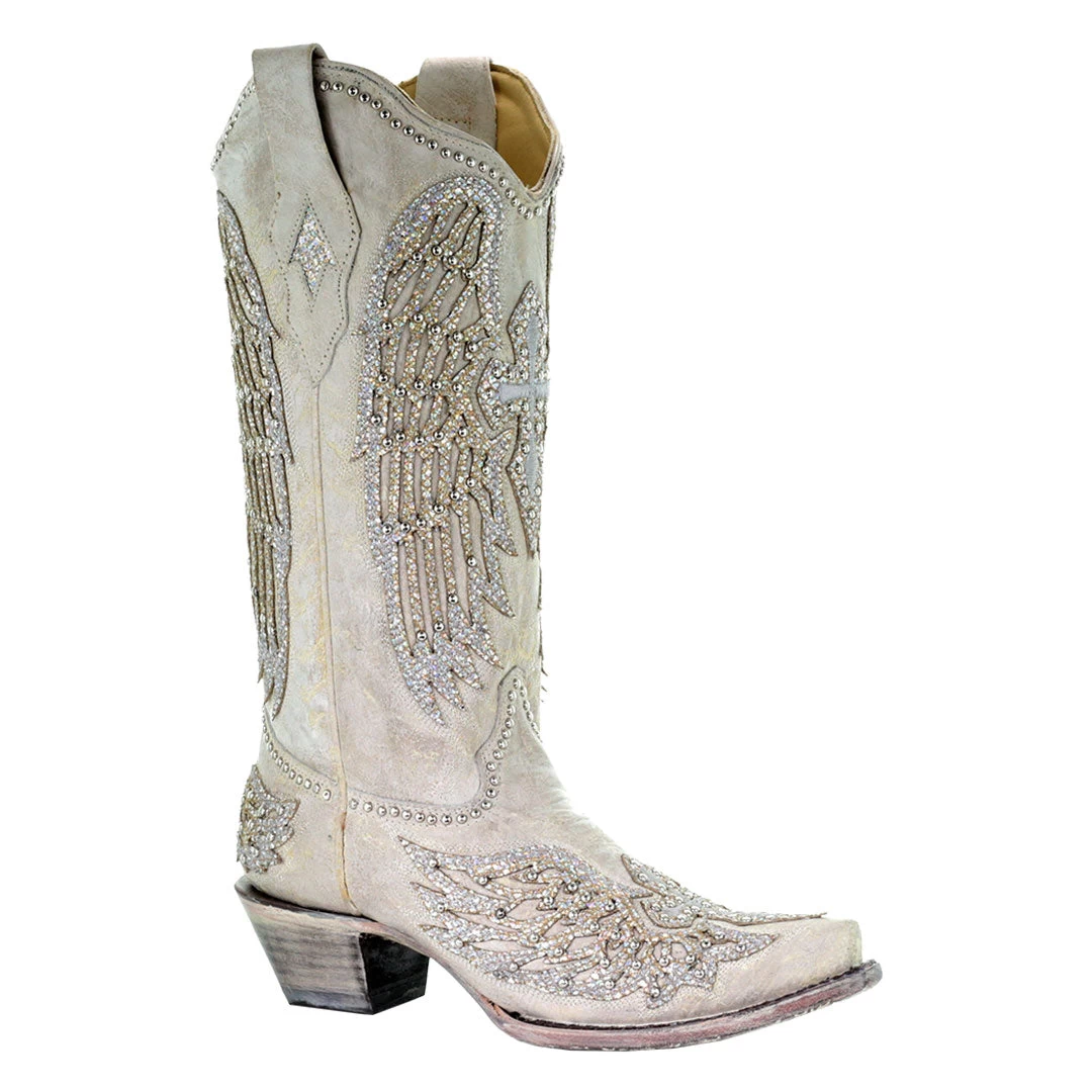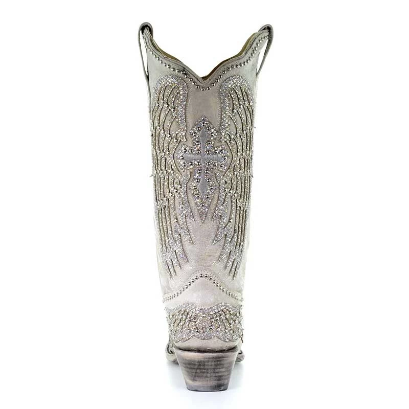 One of the models with which Corral introduced for the first time the concept of fashion-forward cowgirl boots to the entire world back in 1999. Cross & Wings Angela is a reinterpretation suited for Corral’s special Weddings line.