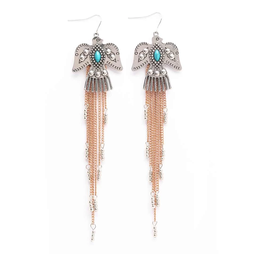 These Cowgirl Confetti Mixed metal Thunderbird earrings with turquoise details make the perfect addition to any outfit, plus they are lightweight for all day wear.