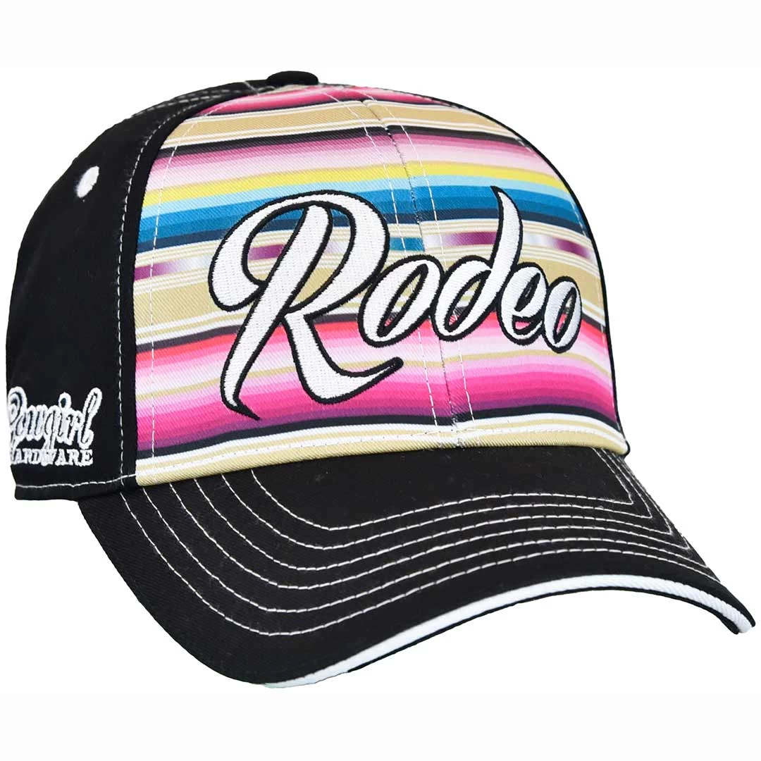 Perfect for every day wear, this cap from Cowgirl Hardware is complete with contrast white thread and serape print front panels with embroidered Rodeo script. This cap is sure to be a staple in your wardrobe.