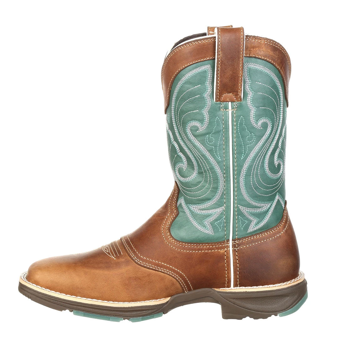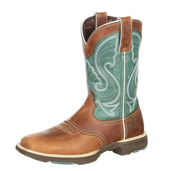 This Women’s Durango Ultra-Lite 10″ Tan/Emerald Western Saddle boot features full grain leather vamp, fox, collar and pull-straps with a man-made shaft.