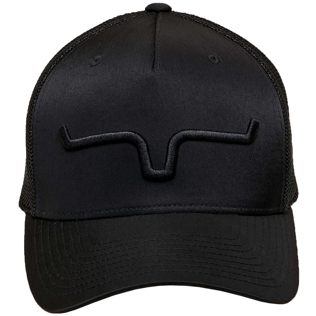 The Sunrise trucker cap from Kimes Ranch features 6 panel construction, a white mesh back, snap back closure, sunrise embroidered twill patch on the front and a curved bill.