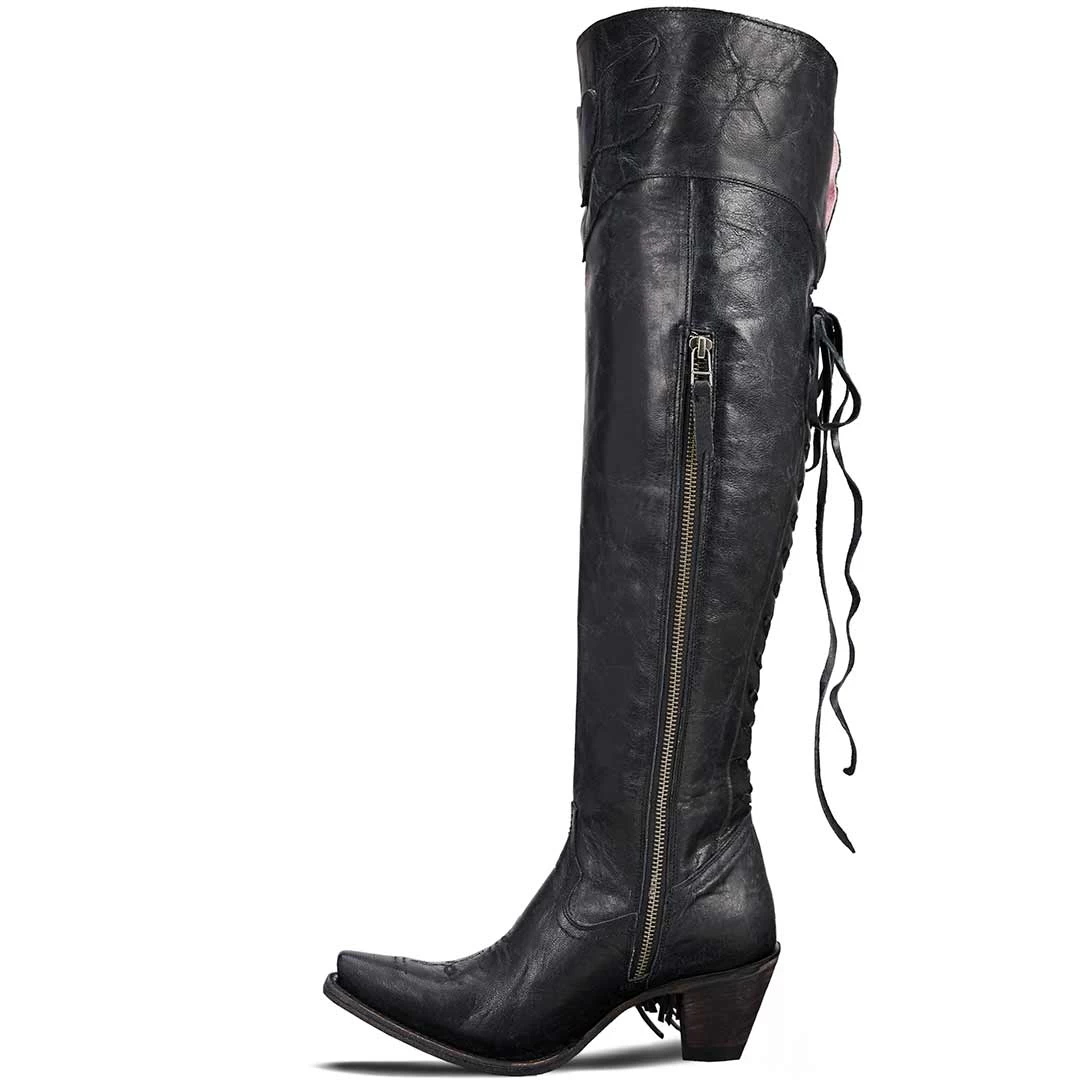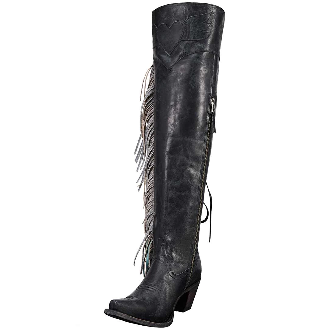 The Junk Gypsy Spirit Animal Boot is a firecracker of a boot, perfect for the Boho Cowgirl. Featuring feathered neon fringe, this high-heeled wonder is about the coolest thing ever. A corset lace design in the back and side zipper is both fashionable and functional. For one more layer of cool, this over the knee classic features the JG free spirited heart and wing logo.
