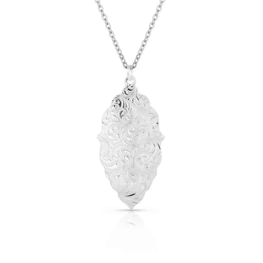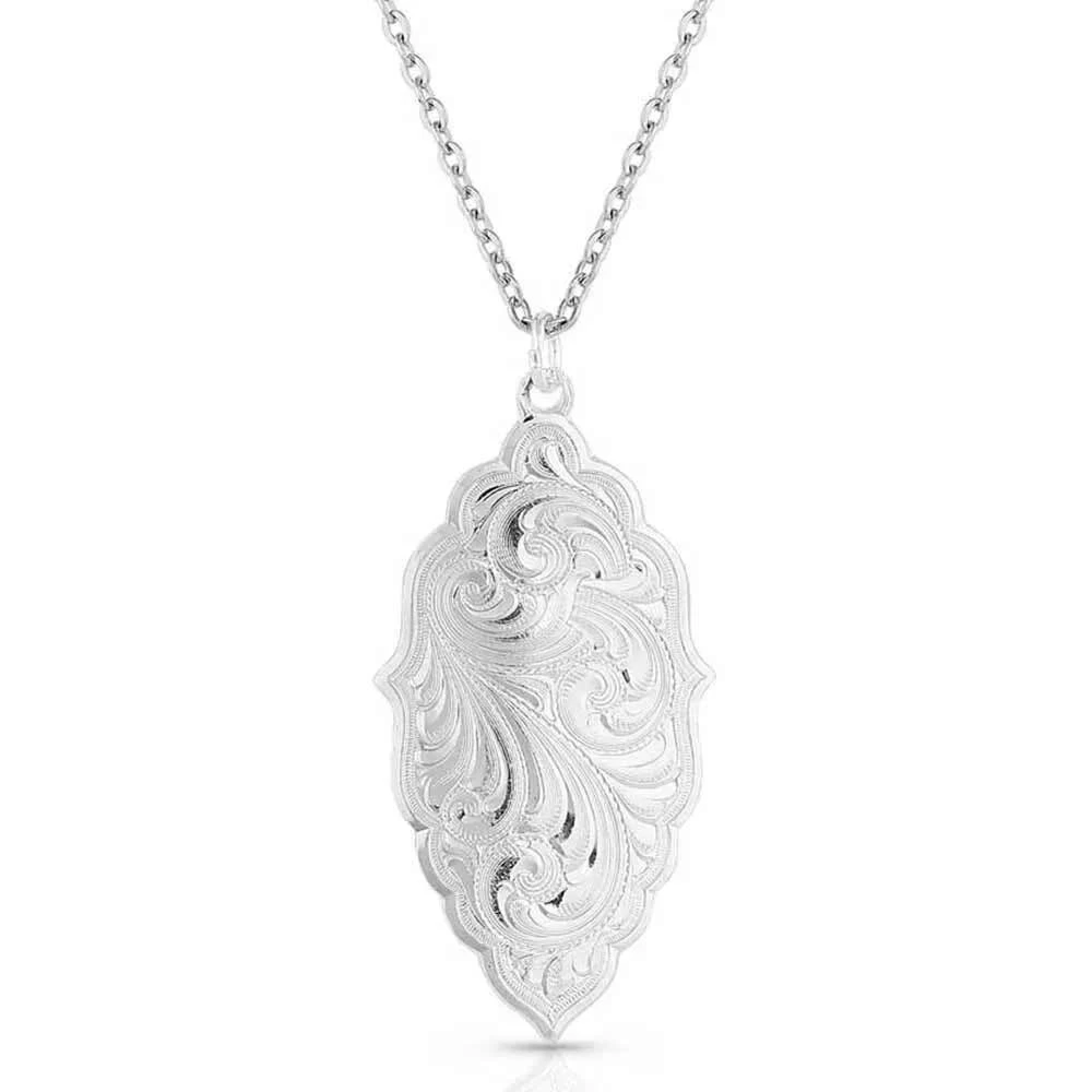 Silver artistry is at our core and showcased in the Best Reflection Mirror Necklace. The classic silver necklace hangs from a 19-inch chain. The pendant is in a lovely, scalloped shape that comes to a point at the bottom of the necklace. The center is adorned with gorgeous western bright-cut engraving.