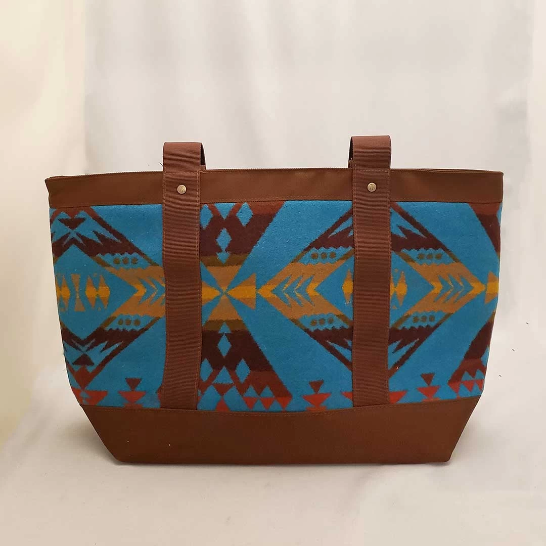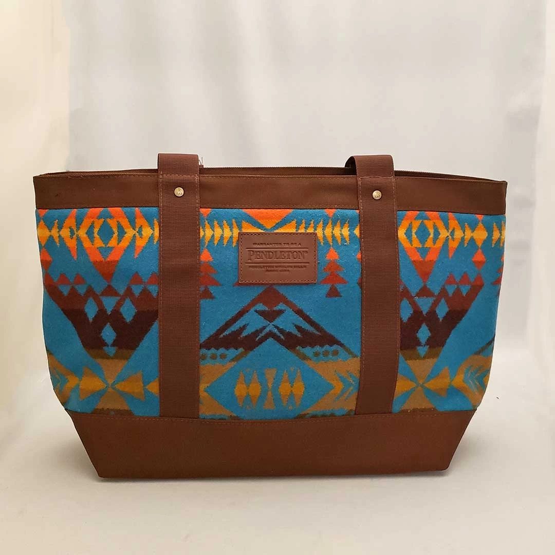 From Pendleton, this versatile diamond peak pattern zip-top bag can function as a travel tote, everyday carryall or large handbag. Crafted of our woven-in-USA wool and cotton canvas, with leather handle grips and interior slip pockets.