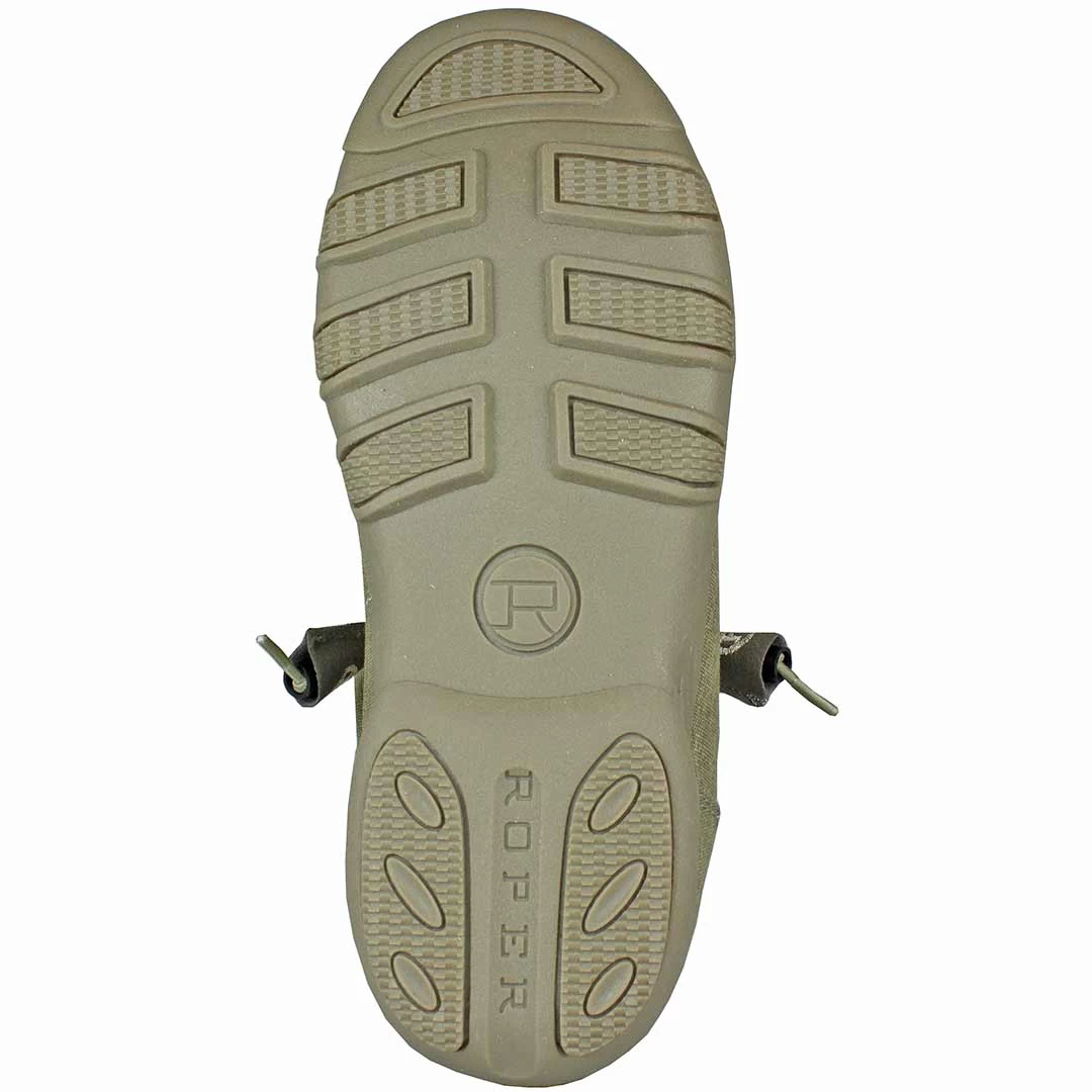Just slip on and you will be ready to start your day. From Roper these slip on fabric shoes feature round mocc toe and removable comfort insole.
