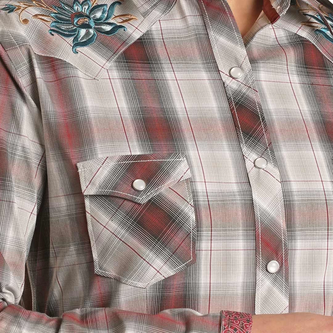 Rough Stock Women’s Floral Yoke Plaid Snap Shirt