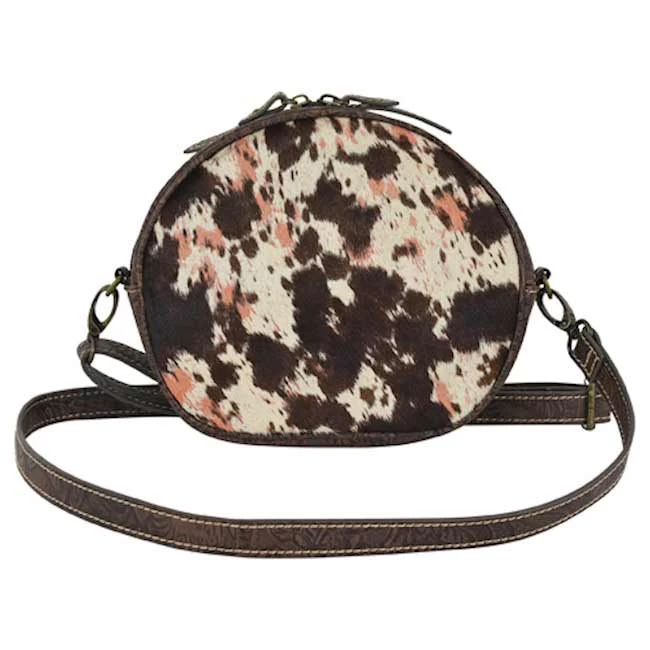 From Tony Lama, this women’s canteen crossbody purse features genuine hair-on-hide. one interior compartment with three credit card slots and a zipper top closure.