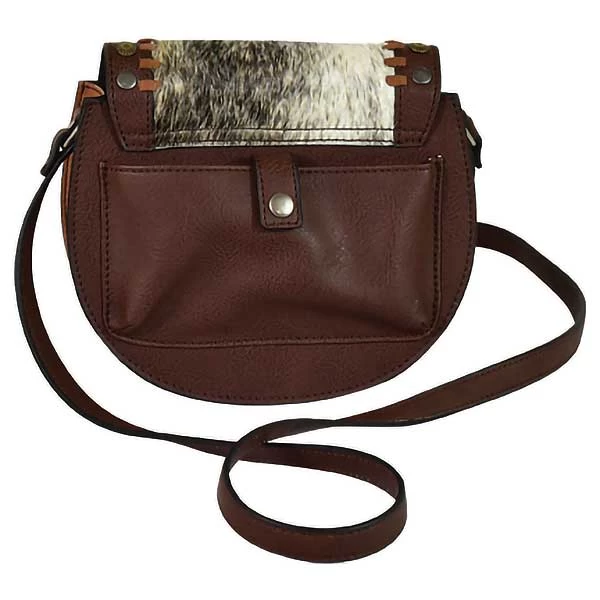 From Tony Lama, this women’s crossbody bag features natural cow hair on the front with stud, whipstitch and tassel accents. It has one compartment with three card slots and a front flag magnetic snap closure.