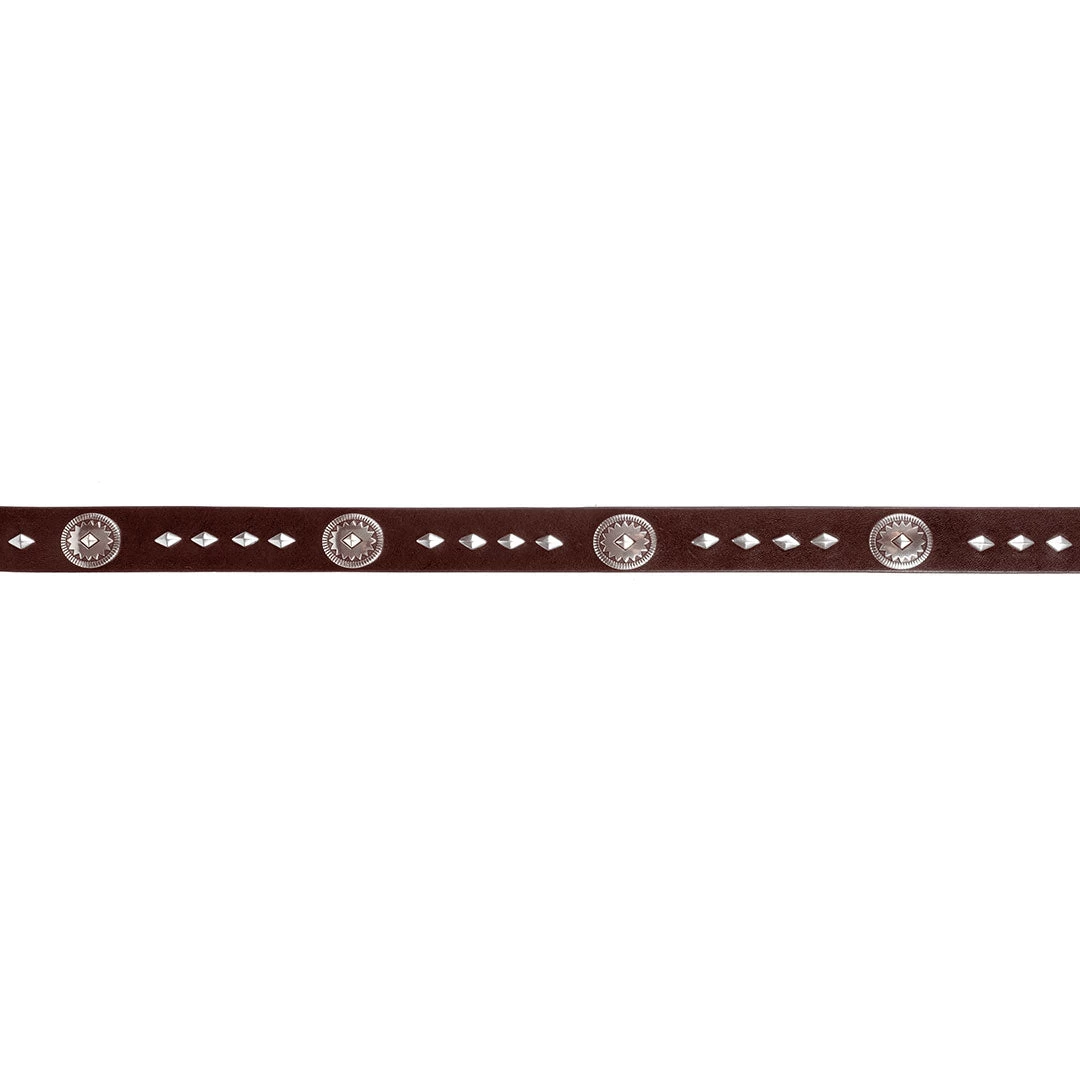 From Spirit Leather Works Wrangler collection, this distressed look belt features diamond and scallop etched conchos and a silver buckle set.