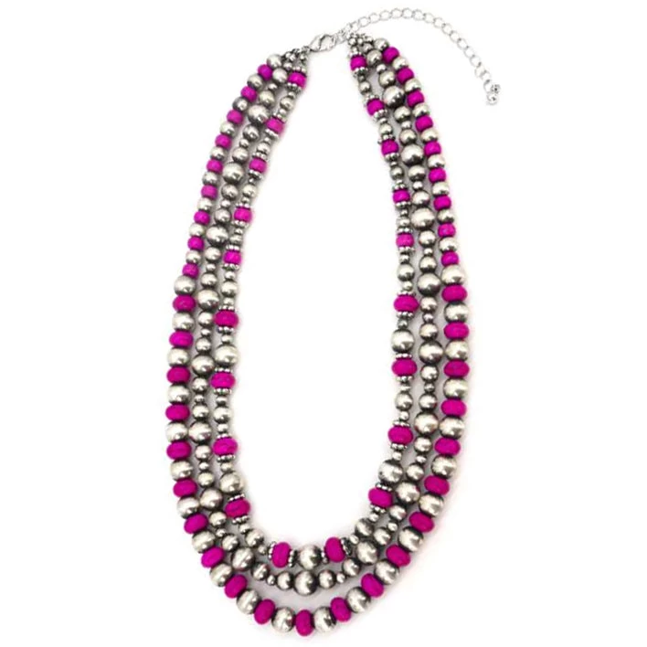 Wyo-Horse Triple Strand Stone And Bead Necklace