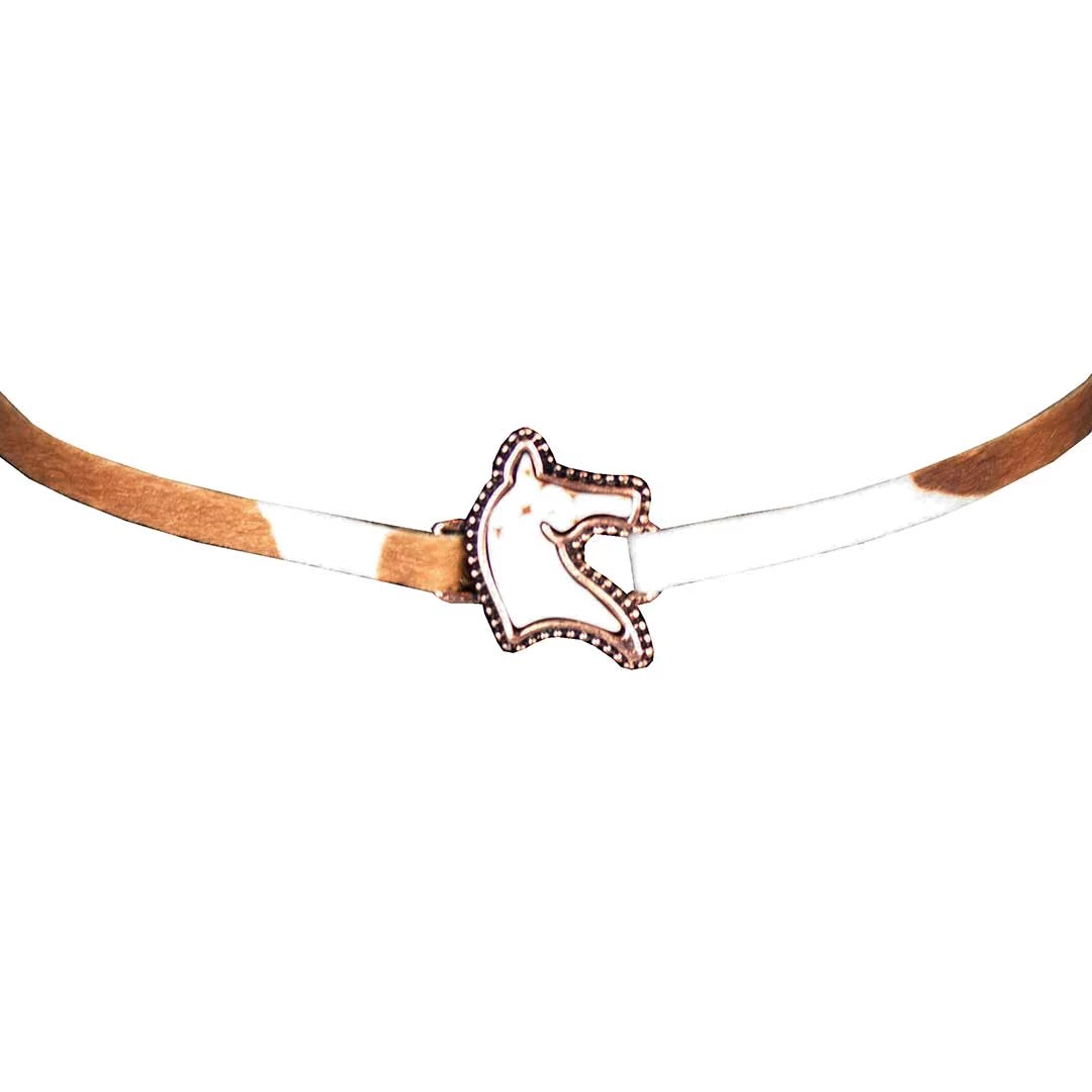 Bold yet delicate, this choker from Wyo-Horse will look great with everything, especially your favourite denim and boots. The choker features a stone horse head pendant set into copper or silver with a hair on-hide strap and an adjustable chain with lobster claw closure.
